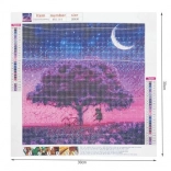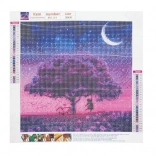 A rózsaszínes–lilás tónusú fa félholddal elbűvölő csillogó hatást kelt, amely keretben és keret nélkül is remekül mutat. A gyémántfestés ideális a lélek megnyugtatására, a finommotorika és a kreativitás fejlesztésére – kezdőknek és haladóknak egyaránt.