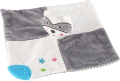 Elegáns szürke-fehér színkombináció és aranyos mosómedve design teszik az alvópajtást tökéletes kiegészítővé minden kiságyban.