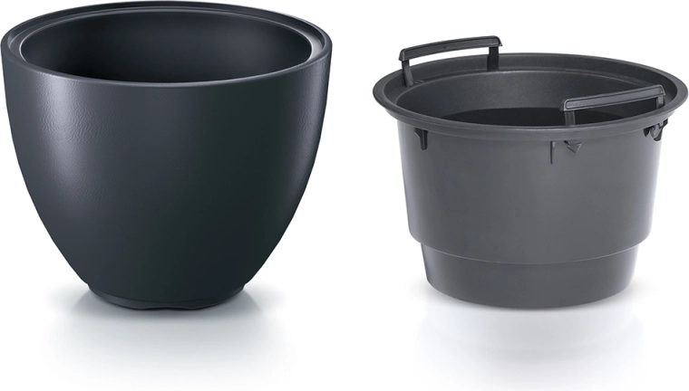 Elegáns HEOS virágtartó 46,9 cm átmérőjű betéttel, antracit színben, beltéri és kültéri használatra egyaránt ideális. Kínálja a modern, minimalista dizájnt, a fagy-, UV- és hőálló tartós műanyagot, valamint a belső betétnek köszönhető egyszerű kezelhetőséget. Kiváló választás otthonokba, irodákba és kereskedelmi terekbe.