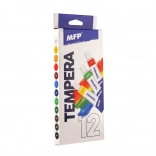 Az MFP temperakészlet praktikus alumínium tubusokban 12 telt árnyalatot kínál iskolai alkotáshoz és otthoni hobbikhoz. A festékeknek magas fedőképességük van, nem tartalmaznak toxikus anyagokat, és kiválóan alkalmasak ecsetes és ujjfestéshez is. Ideális papírra és kartonra, könnyen keverhetők, élénk, karakteres eredményt adnak.
