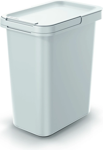 Praktikus, 12 literes, hamuszürke szemetes, ideális konyhába, fürdőszobába és irodába. Kompakt méreteinek köszönhetően kisebb helyekre is befér, és kínál strapabíró műanyagot, higiénikus billenő fedelet és belső keretet a zsák stabil rögzítéséhez.
