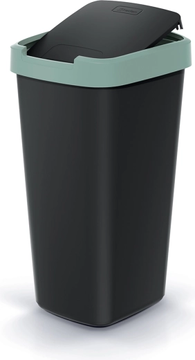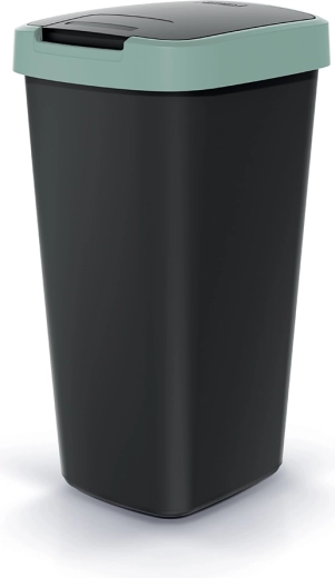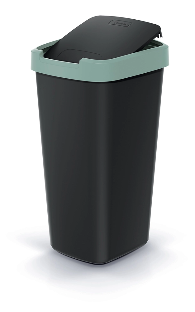 Stílusos és praktikus, 25 literes szemetes billenő fedéllel a kényelmes, érintésmentes hulladékdobáshoz. Kompakt méretei helyet takarítanak meg a konyhában, irodában és az előtérben, míg a levehető fedél stabilan rögzíti a zsákot és tisztán tartja a környezetet. A modern fekete test világoszöld peremmel illeszkedik a belső térhez, és a szelektív hulladékgyűjtést is segíti a színkódolásnak köszönhetően.