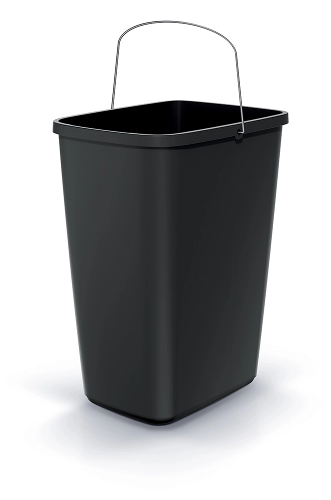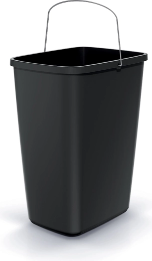 Praktikus, 12 literes szemetes 100% újrahasznosított műanyagból, újrahasznosított fekete színben, ideális otthonra, irodába és kisebb terekbe. Kompakt méreteket, könnyű tisztítást a sima felületnek köszönhetően, valamint tartós kialakítást kínál a hosszan tartó használathoz. A kényelmes kezelhetőség érdekében fém fogantyúval van felszerelve.