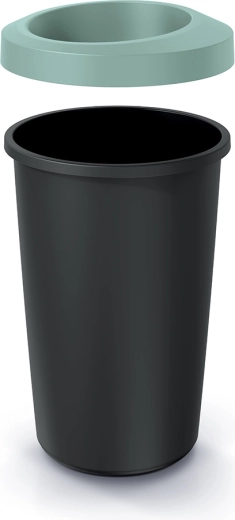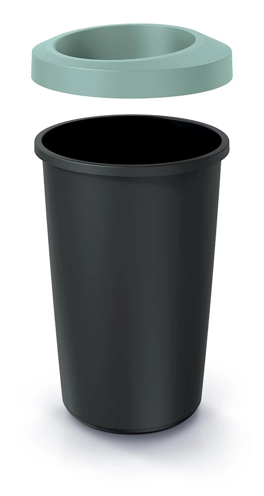 Az elegáns, nyitott felső peremű szemetes modern dizájnjával és kompakt méreteivel (39,4 × 39,4 × 65 cm) kisebb és nagyobb helyiségekbe egyaránt kiválóan illeszkedik. A matt felület tiszta, visszafogott hatást kelt, míg a világoszöld gyűrű friss akcentust ad és megkönnyíti a hulladék bedobását.