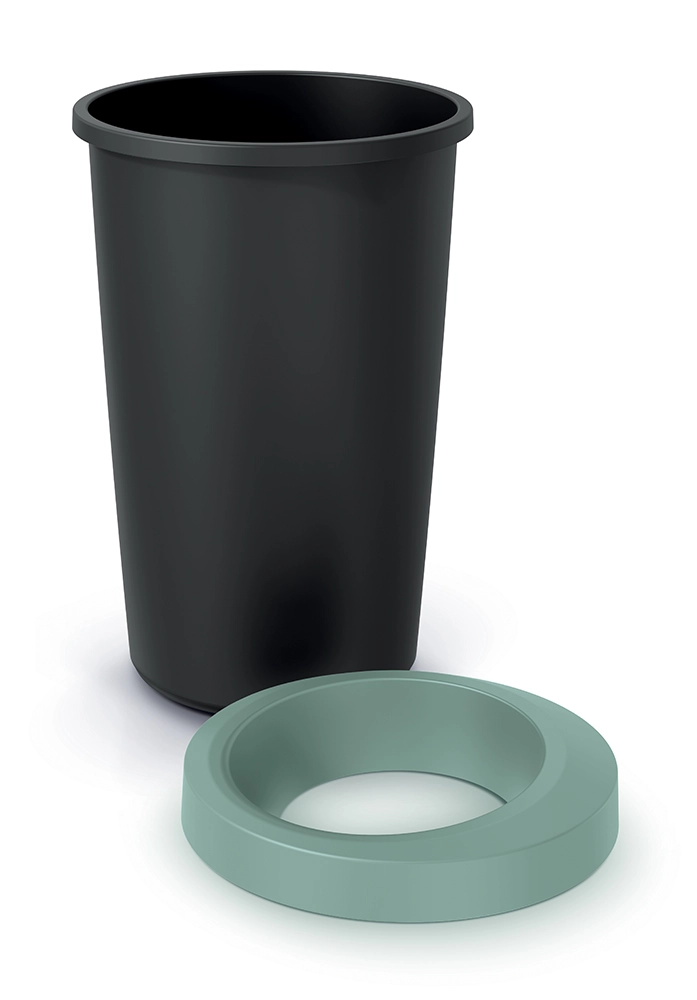 A tartós műanyag révén a szemetes könnyű, stabil és egyszerűen tisztán tartható. A nyitott kialakítás gyors és higiénikus használatot tesz lehetővé fedél mozgatása nélkül. A gyűrűs perem egyben jobban rögzíti a zsákot, és rendezetten tartja a széleket.