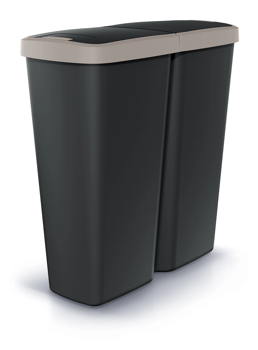 Okos és helytakarékos megoldást keres a hulladék szelektálására? A Prosperplast Compacta Q Duo 50 literes űrtartalmat kínál egy belső edényben, átgondolt, dupla fedéllel, amely lehetővé teszi egy vagy két zsák kényelmes rögzítését. Ezzel megkönnyíti a mindennapi szeparálást, például a kommunális hulladék és a műanyagok szétválasztását.
