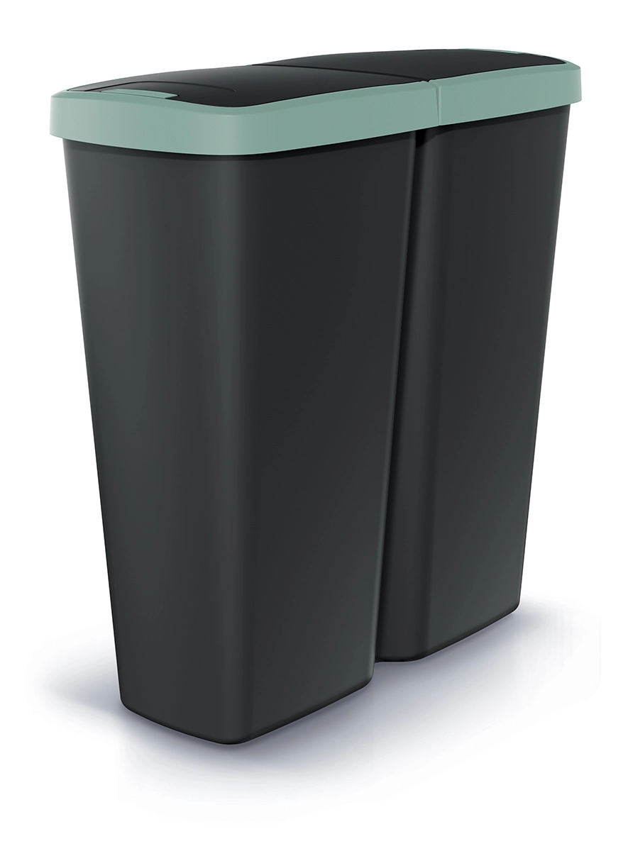 A Prosperplast Compacta Q Duo okos megoldást kínál a mindennapi szelektáláshoz. Egy belső tartály kettős fedéllel lehetővé teszi például a kommunális hulladék, műanyag vagy papír elkülönítését egy vagy két zsák használatával. A fekete test és a világoszöld fedél modern kombinációja bármely belső térbe illik.