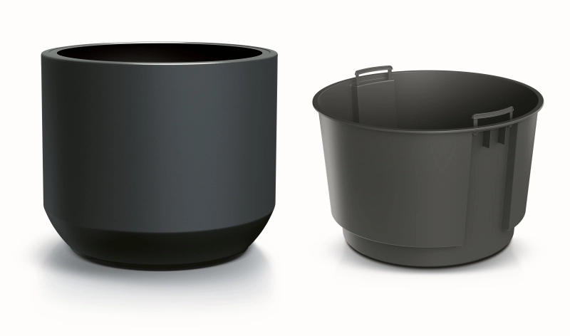 Az integrált belső kaspó jobb vízelvezetést és légáramlást tesz lehetővé a gyökereknél, így a növények egészségesebben fejlődnek. A stabil, kerek talapzatú forma biztosan áll a helyén, és elegendő helyet ad a nagyobb szobanövényeknek, díszcserjéknek vagy pálmáknak.