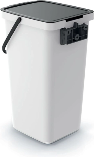 Praktikus és elegáns, 25 l űrtartalmú szemetes otthonra és irodába. Rendelkezik nyitott állásban rögzíthető fedéllel, kivehető belső kerettel a zsák rögzítéséhez, és strapabíró műanyagból készül, amely könnyen tisztítható. A falra vagy ajtóra akasztható kialakításnak köszönhetően helytakarékos, és remekül illeszkedik bármelyik enteriőrbe.