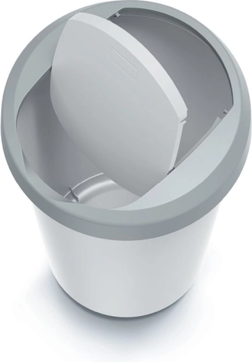 A Compacta R Flap 40 literes szemetes ideális választás a mindennapi hulladékgyűjtéshez és -tároláshoz. A strapabíró műanyagnak köszönhetően könnyű, egyszerűen tisztítható és hosszú távú használatra készült. Az elegáns hamuszürke test világosszürke fedéllel jól illik modern konyhákba, irodákba és közösségi terekbe.