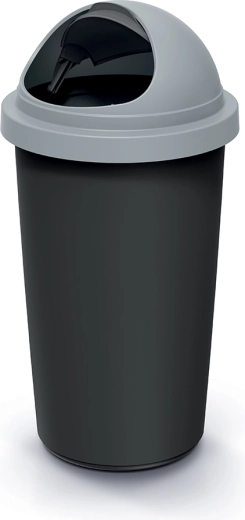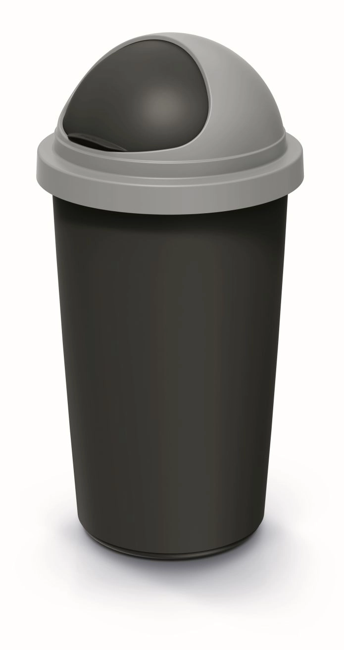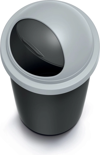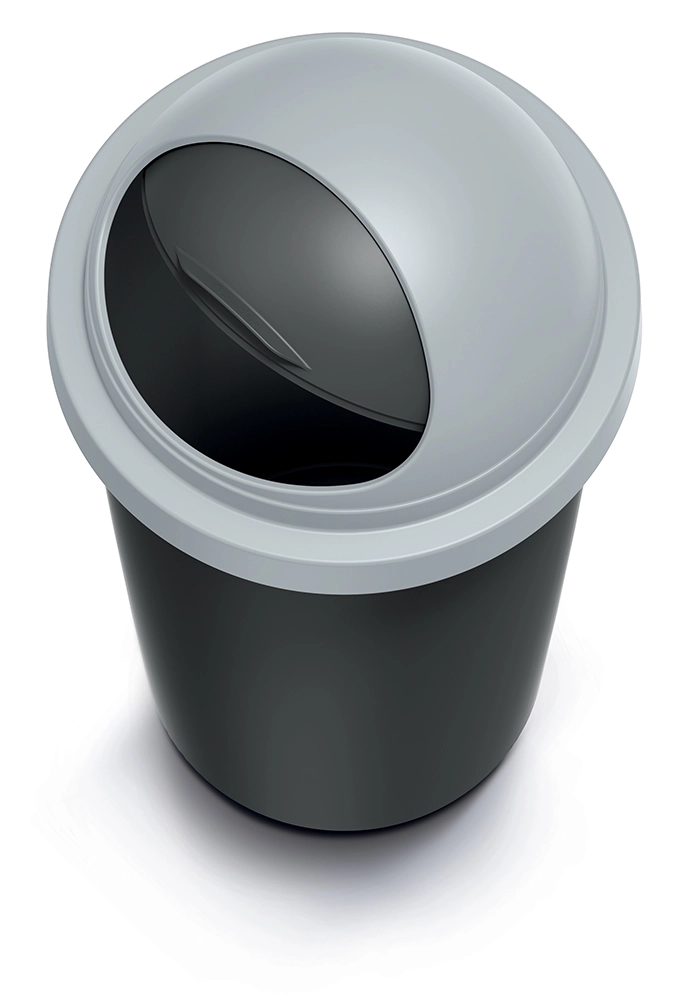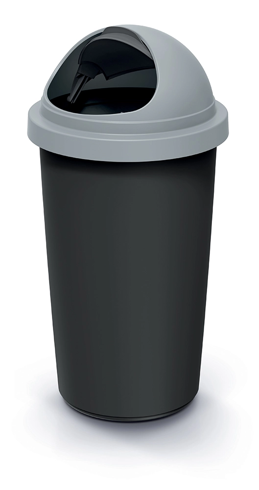 Praktikus, 30 l űrtartalmú szemetes, ideális otthonra és irodába. Tartós műanyag teste újrahasznosított fekete, a világosszürke fedele swing mechanizmussal a kényelmes és higiénikus hulladékbedobáshoz. Kompakt méretei helytakarékosak, a sima felület könnyen tisztítható, a fedél pedig hatékonyan csökkenti a szagok terjedését.