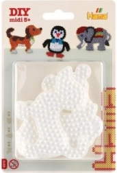 A Hama alátétek készlete lehetővé teszi a 5 éves kortól gyerekek számára, hogy színes képeket készítsenek fehér műanyag alátétekkel, melyek elefánt, pingvin és kutyus alakúak.