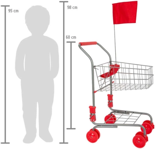Az ezüst színű SMALL FOOT gyerek bevásárlókocsi valósághű dizájnnal, stabil fém szerkezettel, piros akcentusokkal és biztonsági zászlóval hívja fel magára a figyelmet. A forgó első kerekeknek köszönhetően a kocsi még kisebb terekben is könnyen manőverezhető, így a gyerekek kényelmesen „vásárolhatnak”, mint a szülők.