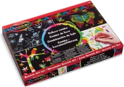 Ez a deluxe kaparós készlet a MELISSA & DOUG-tól egyszerű és lebilincselő módon segít egyedi képek alkotásában. Minden lapot fekete réteg borít, amely alatt szivárványos, élénk színek rejtőznek. Elég óvatosan kaparni a mellékelt tollal, és a színek azonnal életre kelnek.