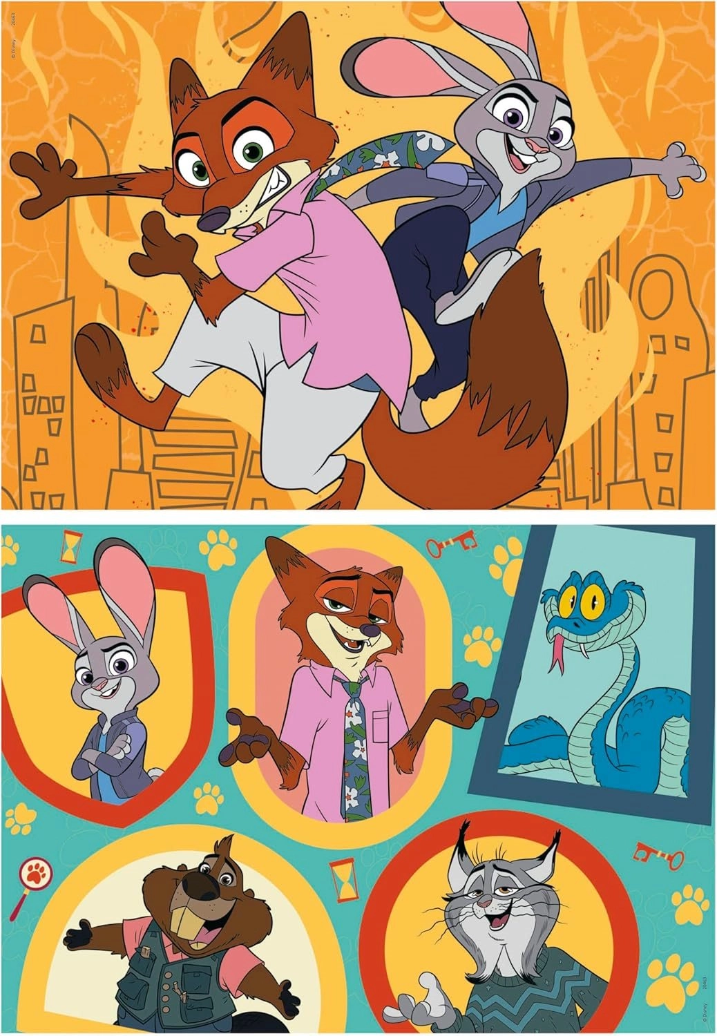 Az EDUCA márka gyermek puzzléja ZOOTROPOLIS motívummal két darab, azonos méretű, egyenként 48 darabból álló kirakót tartalmaz. Örömet okoz a élénk színek, az atraktív motívumok és a minőségi kivitelezés, amelyek fejlesztik a finommotorikát és a türelmet.