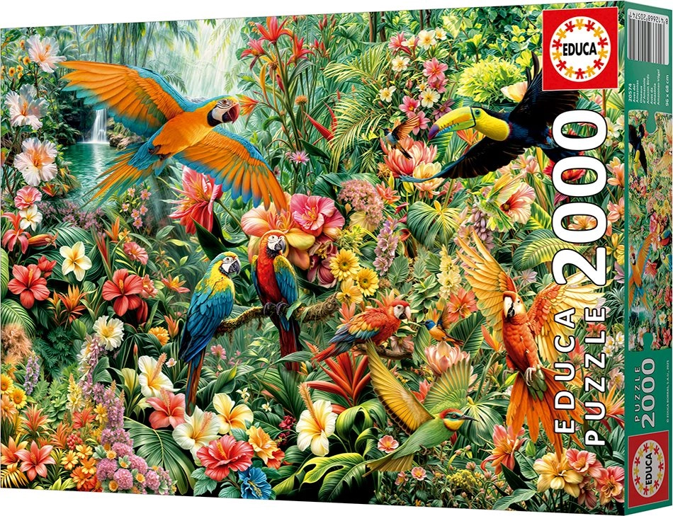 Fedezze fel az esőerdő szépségét az EDUCA „Amazonas madarai” puzzle-lel, amely 2000 darabból áll. A csomag része a FIX PUZZLE ragasztó ingyen, az elkészült kép mérete pedig kb. 96 × 68 cm.
