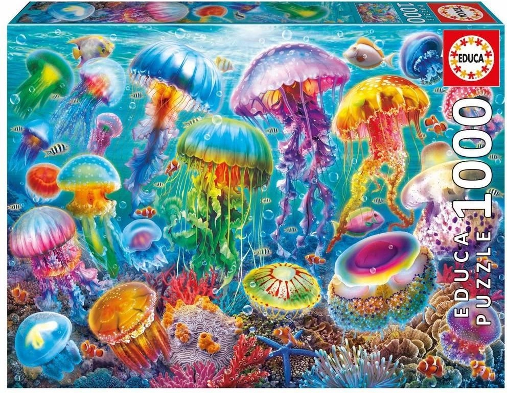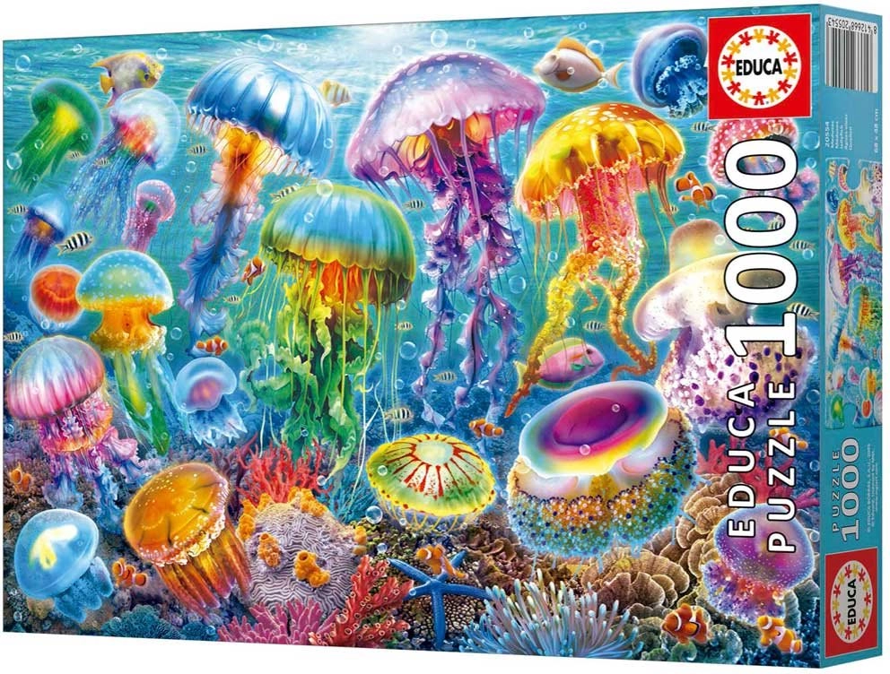 Fedezze fel a tengeri élőlények megnyugtató világát ezzel a minőségi kirakóval. 1000 darab lenyűgöző medúza motívummal, sima illeszkedéssel és ingyenes, mellékelt ragasztóval a kész kép egyszerű rögzítéséhez.