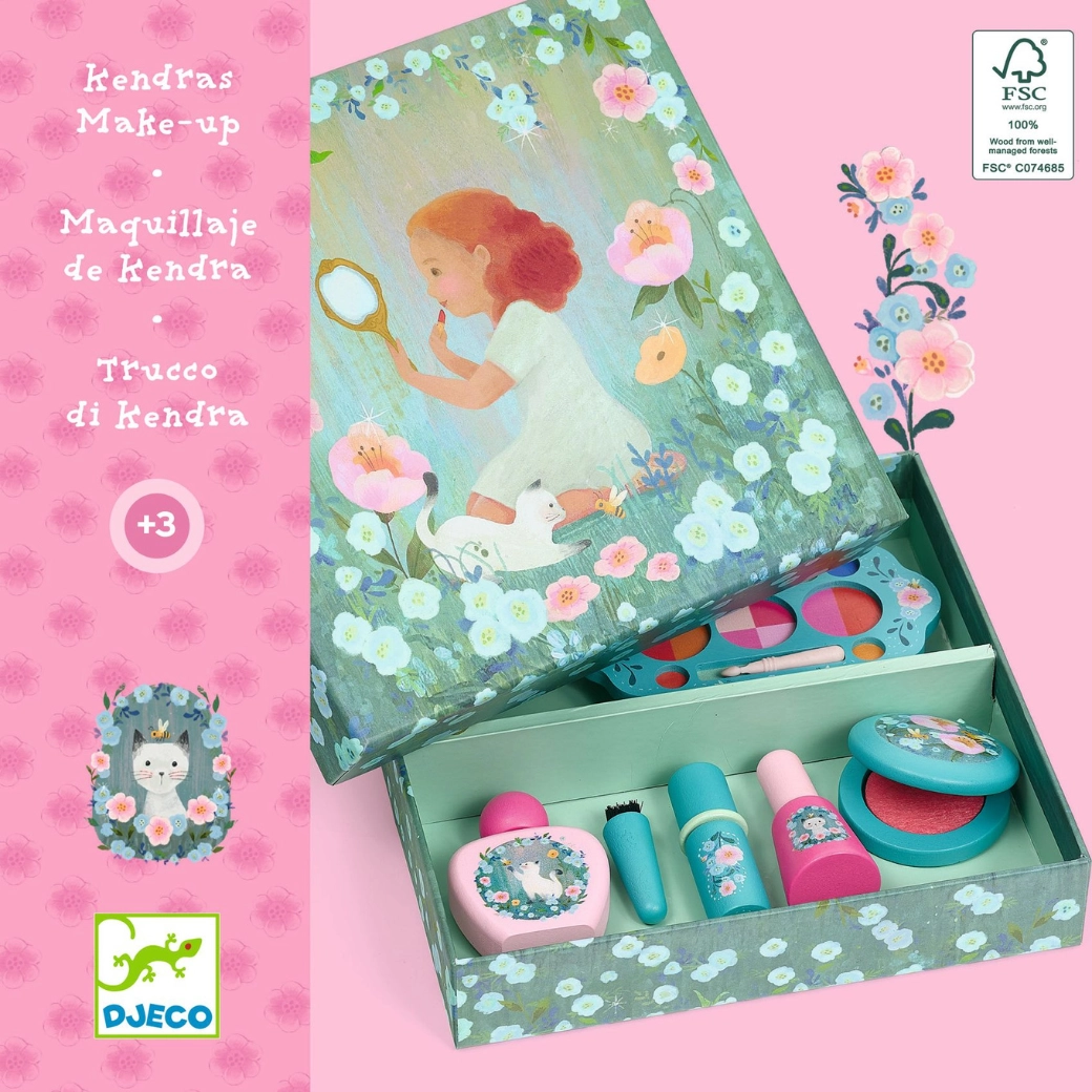 A Djeco Kendra sminkkészlet szórakoztató módon vezeti be a gyerekeket a sminkelés világába. Átgondolt színválasztékának és kellemes kivitelének köszönhetően tökéletes a felnőttek játékos utánzásához és kreatív jelmezekhez. Minden a gyerekek bőrére és a kényelmes használatra lett tervezve.