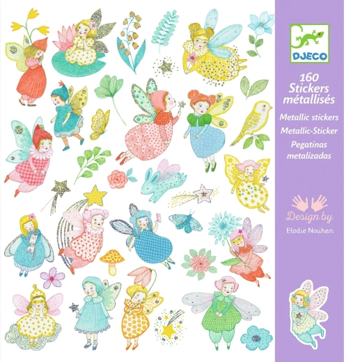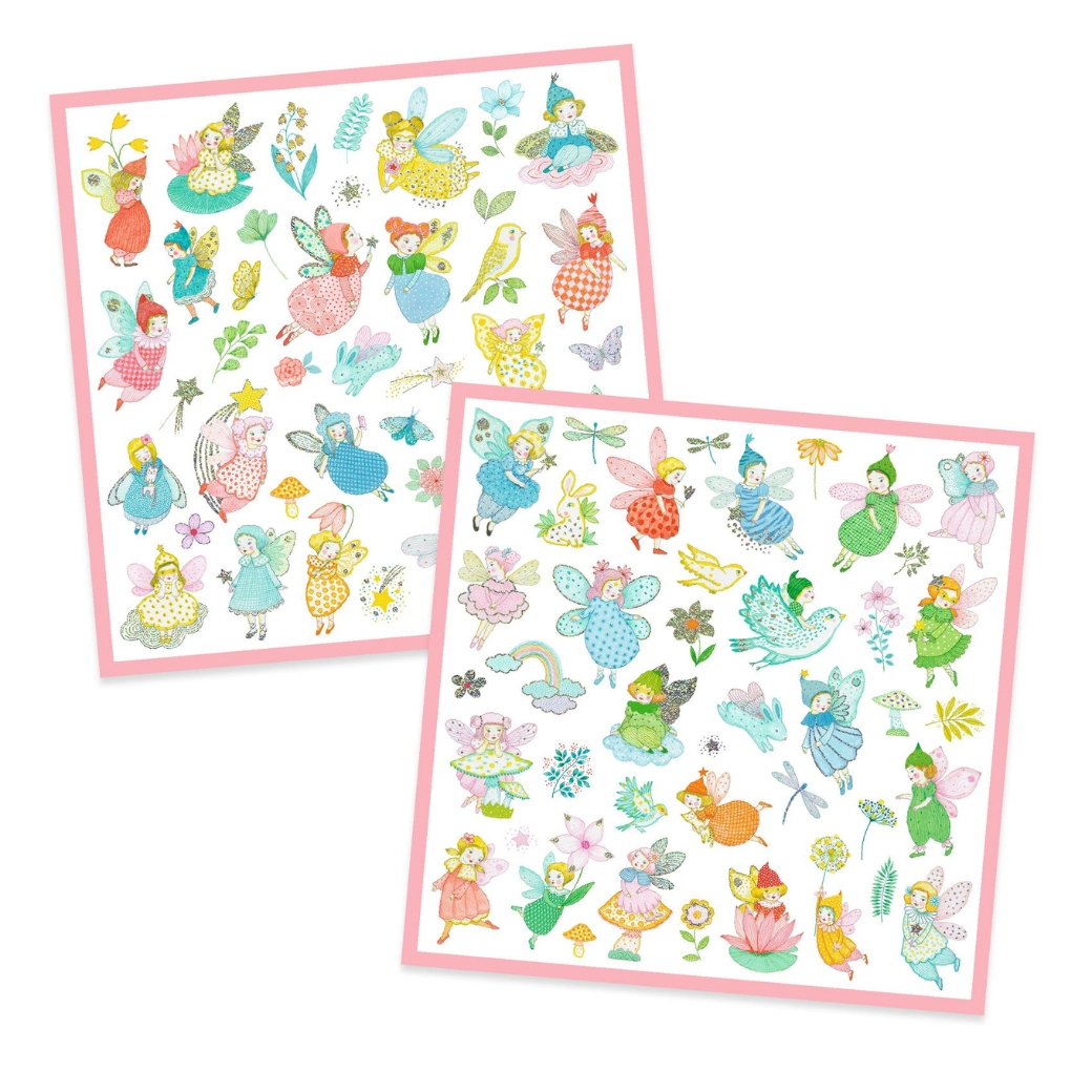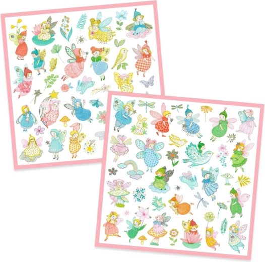 Bűvöld el a gyerekeket a tündérek varázslatos világával ezekkel a csillogó matricákkal a DJECO márkától. Ideális füzetek, üdvözlőkártyák, naplók díszítéséhez vagy kreatív játékhoz. A ragyogó színek, a fényes részletek és az egyszerű felhelyezés örömet okoz a kis alkotóknak és a meserajongóknak.