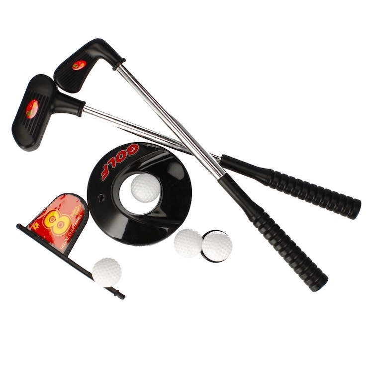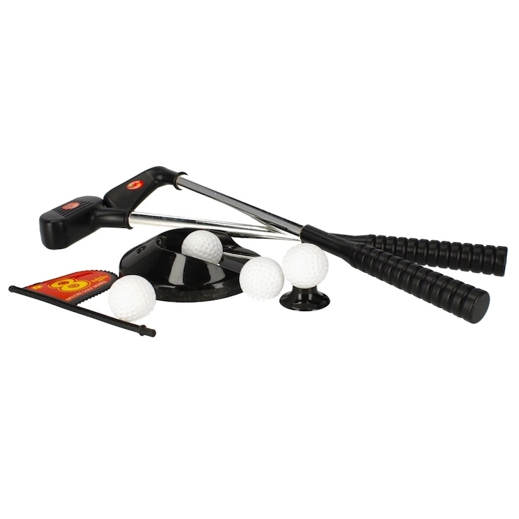 A csomagban 2 ütő, 3 labda, lyuk zászlóval és rámpa/cél található – csak állítsd fel, és már kezdődhet is a játék bent vagy kint.