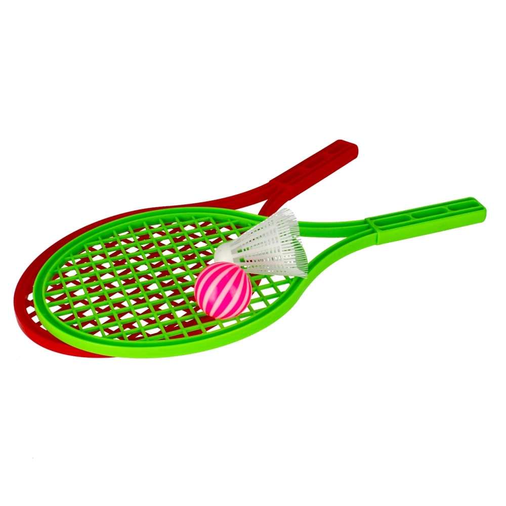 A szett 2 könnyű, színes műanyag ütőt tartalmaz, ideális testvérek vagy barátok közös játékához.