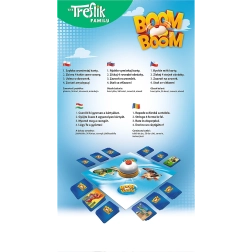 A BOOM BOOM Treflik család egy dinamikus észlelési kártyajáték, amelyben a játékosok egyszerre cserélnek kártyákat a játéktéren lévőkkel, hogy a lehető leggyorsabban összeállítsák a megfelelő szetteket. Amint kész a szetted, nyomd meg a csengőt, és jelezd a sikered – a leggyorsabb nyer!