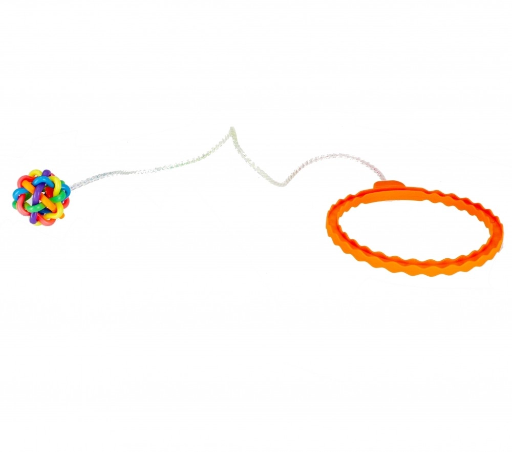 Élénk színek a jobb láthatóságért, valamint könnyű műanyag gyűrű zsinóron lévő golyóval az egyszerű pörgetéshez és irányításhoz.
