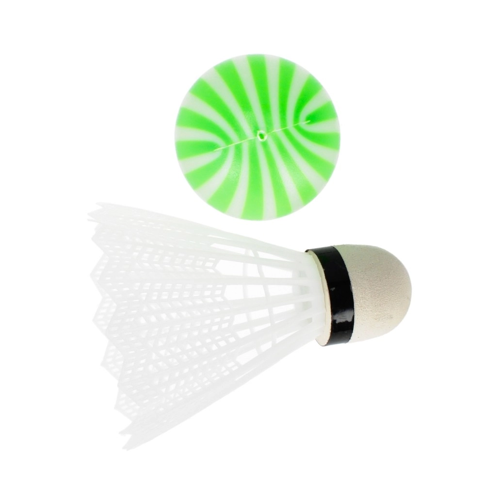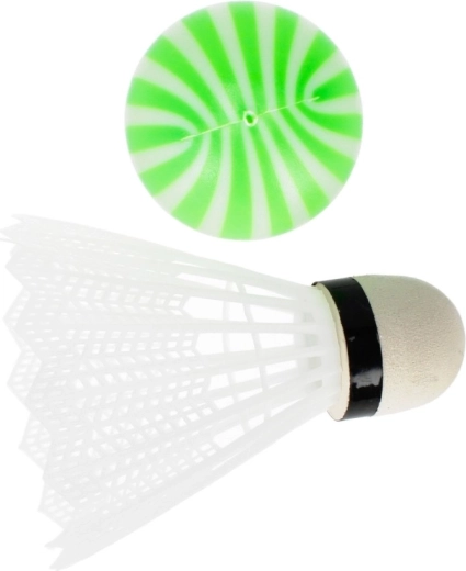 A csomagban találsz egy klasszikus tollaslabda-labdát és egy puha, csíkos labdát – válaszd ki a tempót és a játékstílust a gyerekek életkora és készségei szerint.