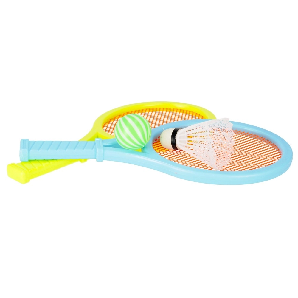 A csomag része a klasszikus tollaslabda-labda a pörgős ütögetéshez, valamint egy puha, csíkos labda, amely lassabb, játékosabb tevékenységekhez ideális. A készlet kiváló szabadtéri programokhoz, fejleszti a szem–kéz koordinációt, támogatja az egészséges mozgást, és sok örömet szerez az egész családnak.