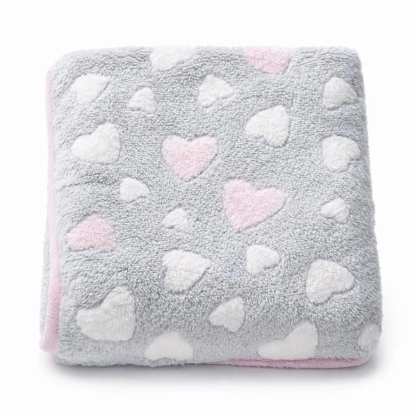 A puha, rózsaszín szívecskés takaró praktikus és stílusos kellék, amely örömet szerez a szülőknek és a babának egyaránt.
