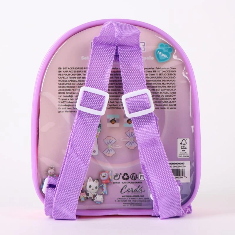 Fedezd fel a GABBY DOLL'S HOUSE kreatív világát ezzel a varázslatos hajdísz készlettel a cuki hátizsákban. A gyerekek imádni fogják a fodrászos szerepjátékot, és könnyedén készítenek stílusos copfokat, fonatokat és ünnepi frizurákat. A könnyű hátizsák praktikus tárolóként szolgál minden kiegészítőnek, és tökéletes kirándulásokra vagy látogatásokra.