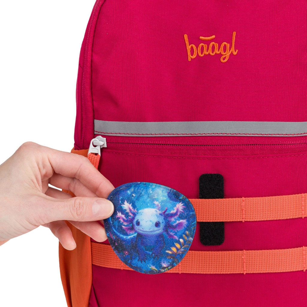 A BAAGLIES kitűzők okos kiegészítők a BAAGL iskolatáskákhoz és hátizsákokhoz. Az Axolotl motívum örömet szerez a cuki állatok rajongóinak, és gyors személyre szabást tesz lehetővé az iskolai felszerelésen. Az egyszerű, tépőzáras rögzítés biztonságos tartást és másodpercek alatti cserét biztosít.