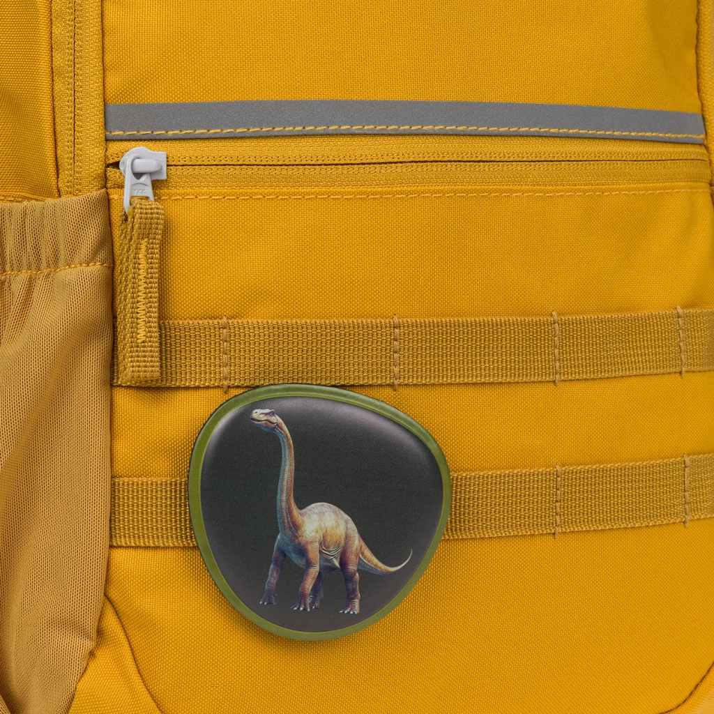 Változtasd meg a hátizsák kinézetét néhány másodperc alatt. A két kerek, dinoszaurusz témájú kitűző tépőzárral rögzíthető – egyszerűen felteszed, kicseréled és indulhatsz. A gyerekek így pontosan a saját ízlésükre szabhatják iskolai társukat.
