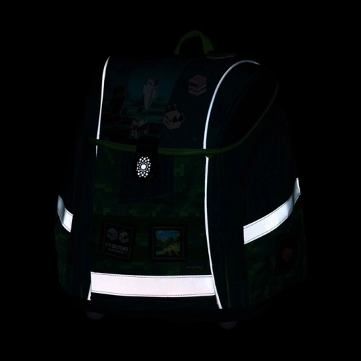 A fényvisszaverő elemek növelik a láthatóságot az iskolába vezető úton. A mellpánt és a kompressziós pántok stabilan a háton tartják a táskát, a megerősített alj stabil lábakkal növeli az élettartamot.