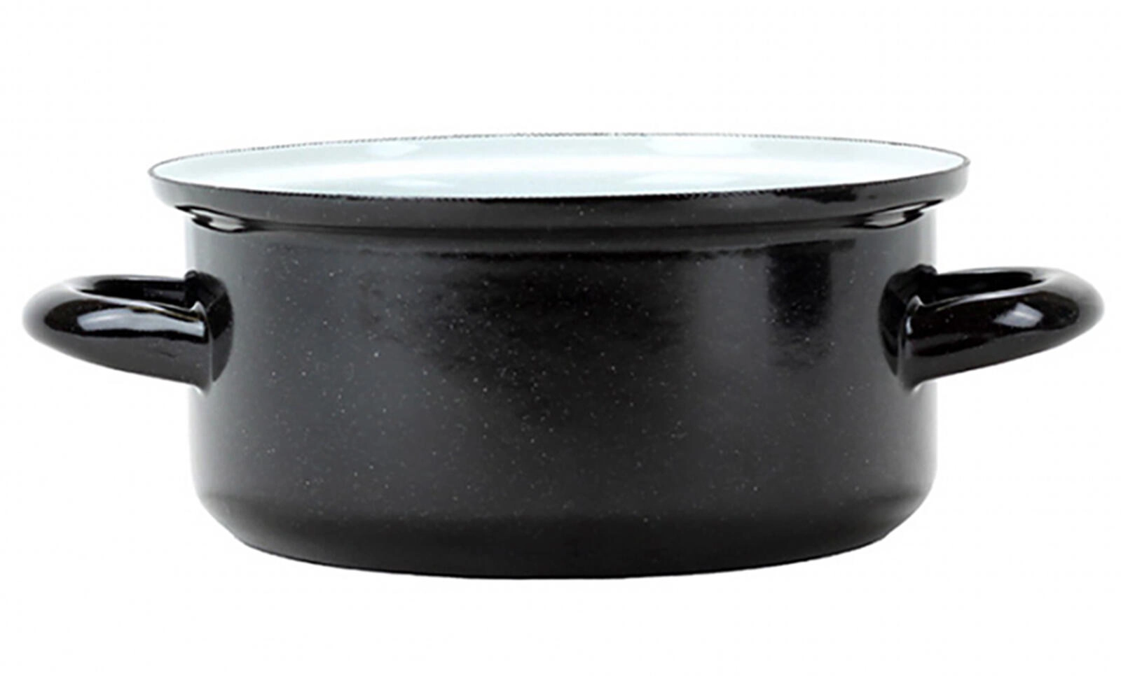 A tartós, minőségi zománcból készült lábas a hagyományos kivitelezést a modern, egészséges főzési igényekkel ötvözi. A belső fehér gránit megkönnyíti az ételek felügyeletét és csökkenti a letapadást, míg a külső fekete, fehér pettyezett felület időtálló megjelenést ad, amely bármely konyhába illik.