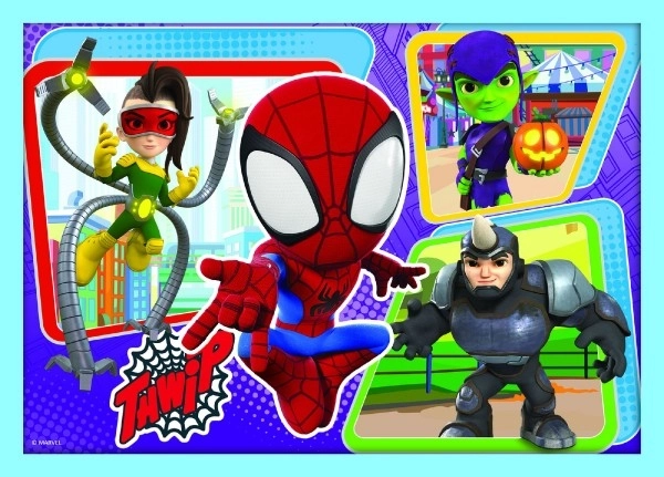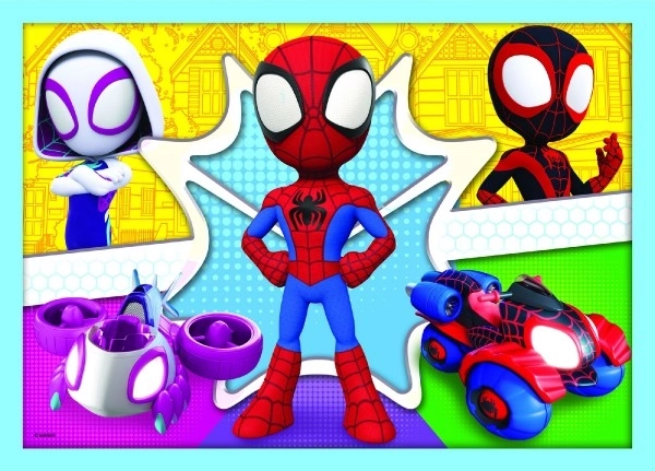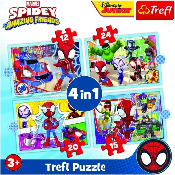 Gyermekeknek szóló 4 az 1-ben puzzle készlet MARVEL Spidey and His Amazing Friends motívumokkal – szórakoztat és fejleszt 3 éves kortól. A különböző nehézségi szintek (12, 15, 20 és 24 darab) támogatják a finommotorika, a logikus gondolkodás és a türelem fejlődését. A minőségi kidolgozás és az ökológiai anyagok biztonságos, tartós szórakozást biztosítanak.