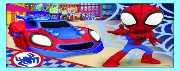 Színes illusztrációk Spideyval és barátaival, amelyek motiválják a gyerekeket az ismételt kirakásra és játékra.