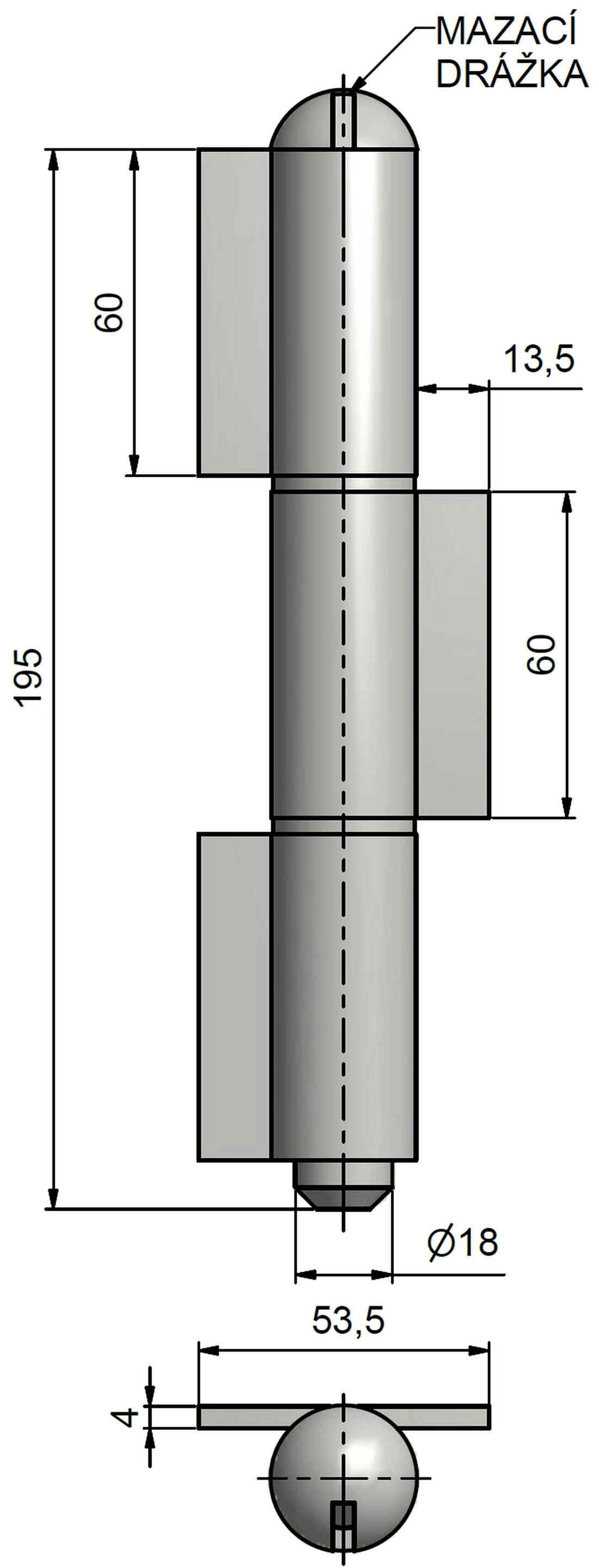 Robusztus, 180 mm hosszú csapos zsanér megbízható és tartós forgókapcsolathoz nagyméretű ajtó- és kapuszárnyak és a tok között. Ideális nehéz szárnyakhoz, biztosítja a simulékony működést, a hosszú élettartamot és az egyszerű szerelést.
