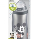 A NUK FC sportkulacs Mickey Egér mintával 3 éves kortól ajánlott. Ez a praktikus kulacs nem csöpögő push-pull kifolyóval van felszerelve, amely könnyen használható és biztonságos. A palack praktikus fedéllel rendelkezik, amely higiénikusan tartja a kifolyót, és klipsszel van ellátva, mellyel rögzíthető hátizsákhoz vagy övhöz.