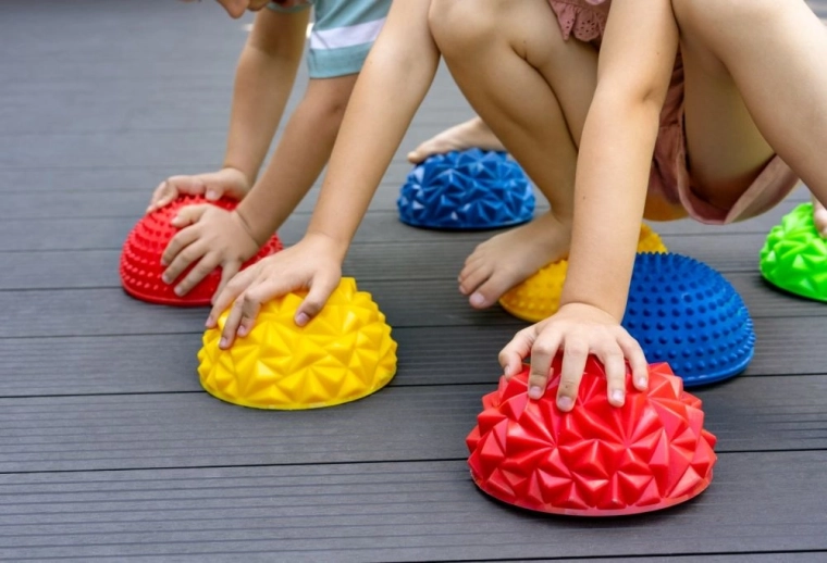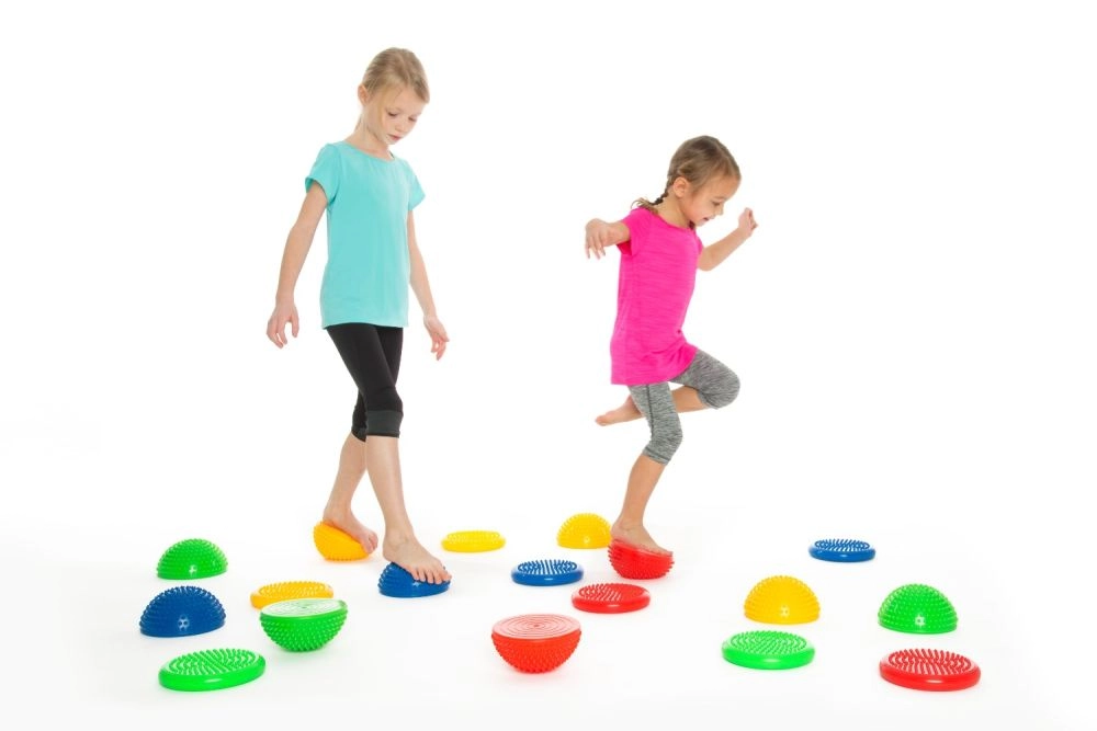 A szenzoros egyensúlyozó félgömbök megbízhatóan segítik az egyensúly, a propriocepció és a finommotorika fejlődését. Jellegzetes, mégis kellemes textúrájuk stimulálja a talpakat és a tenyereket, támogatja a helyes testtartást és aktiválja a mély stabilizáló izmokat. Tartós kivitelüknek és akár 100 kg teherbírásuknak köszönhetően gyermekek és felnőttek számára is megfelelőek.