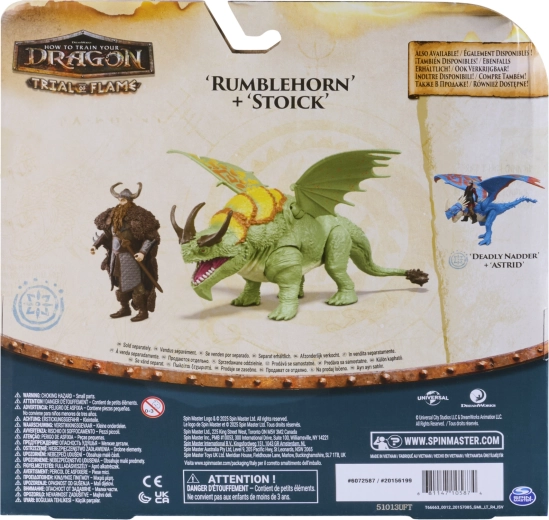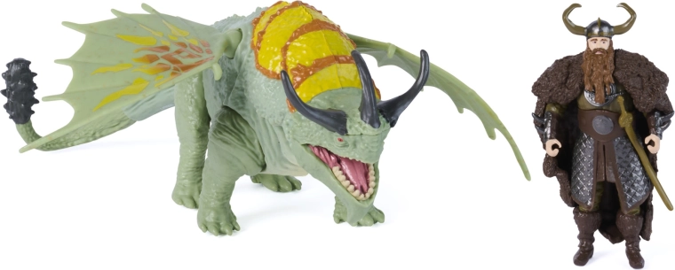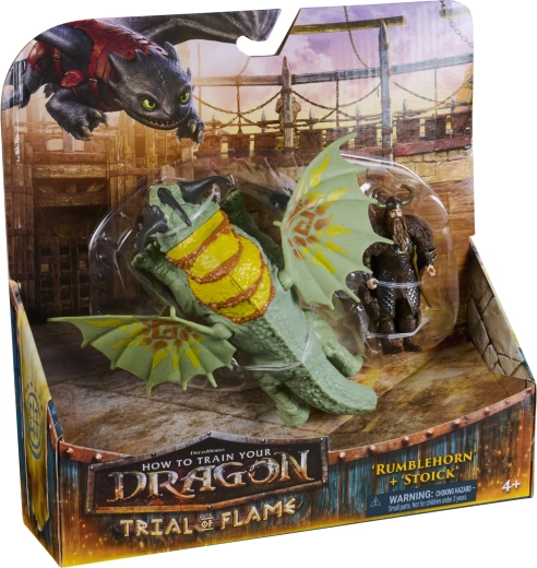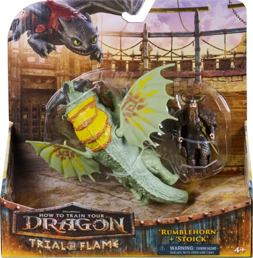 Lépjen be a vikingek és sárkányok világába. A zöld–türkiz Rumblehorn sárkány mintázott, hártyás szárnyakkal és feltűnő szarvakkal lenyűgöző megjelenést nyújt, míg Stoick ikonikus páncéljában készen áll az akcióra. A figurák örömet szereznek a gyűjtőknek és azoknak a gyerekeknek is, akik szeretik az akciódús történeteket és az How to Train Your Dragon jeleneteinek újrajátszását.