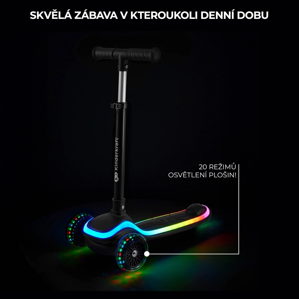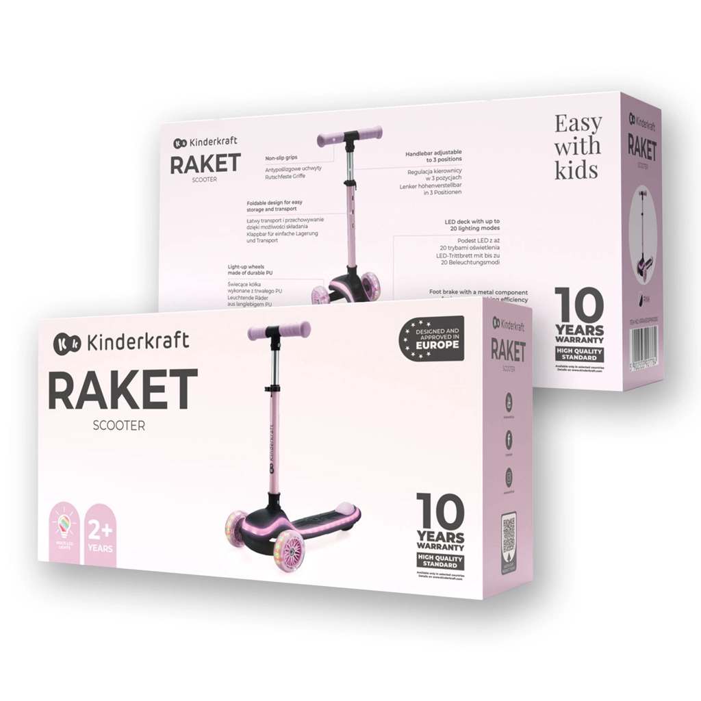 A KINDERKRAFT Raket Pink gyerekroller kis motorosoknak készült, akik most tanulják a stabil és biztonságos gurulást. A dőléssel történő kanyarodás rendszerének köszönhetően a gyerekek természetes módon gyakorolják az egyensúlyt, míg a széles és alacsony fellépő biztos állást nyújt. A fellépő LED-világítása akár 20 üzemmóddal és az RGB kerekek feldobják minden kiruccanás hangulatát és javítják a láthatóságot sötétedés után.