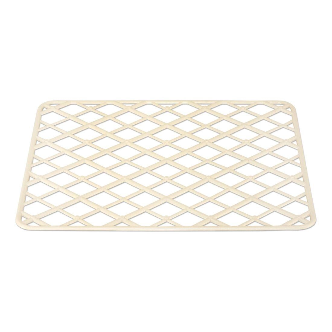 Ez az univerzális mosogatóbetét ideális a mindennapi használatra. A nyitott rácsszerkezet szabad vízelvezetést biztosít és javítja a száradást, miközben védi a mosogató felületét a karcolásoktól. A tartós műanyag könnyen tisztítható és könnyű, így a betét kezelése egyszerű.