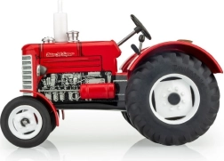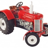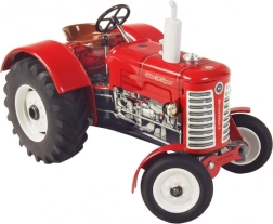 A klasszikus Zetor 50 Super traktor 1:25 méretarányú modellje örömet szerez gyűjtőknek és gyerekeknek egyaránt. A meghajtást egy felhúzható rugós szerkezet biztosítja, nem hiányzik a négyfokozatú váltó, a hátramenet, a üres (neutral) és a kézifék. Az első tengely kormánnyal irányítható, a fém kivitel pedig valódi masszivitást ad a játéknak.