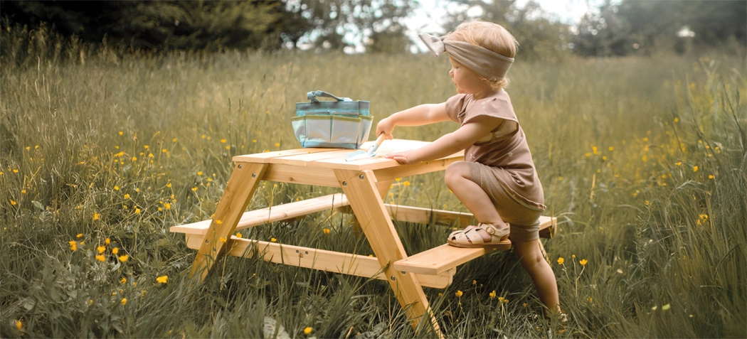 Ajándékozzon a gyerekeknek saját helyet játékhoz, alkotáshoz és az első piknikekhez. A small foot gyermek piknikasztal strapabíró, tömör fából készül, természetes megjelenéssel, masszív A-konstrukcióval és mindkét oldalon beépített padokkal. A lekerekített élek és a kényelmes ülésmagasság biztonságos, ergonomikus ülést támogatnak.