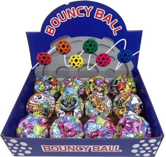 Vidám gumilabda Szörnyek motívumokkal, 7 cm átmérővel, amely örömet szerez gyerekeknek és felnőtteknek egyaránt. Kiváló játék otthonra és szabadtérre, jól pattog, és 3 változatban érhető el. A 12 darabos display dobozos praktikus csomagolás ideális üzleteknek és csoportos eseményekre.