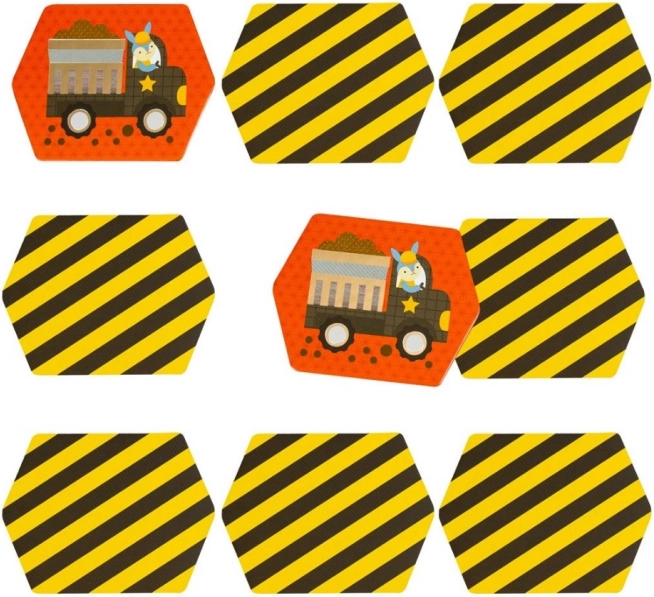 Különböző járműábrázolások hatszögletű kártyákon nemcsak a memória javításához segítik a gyerekeket, hanem ösztönzik a megismerési képességeiket is a játékosság megőrzésével.