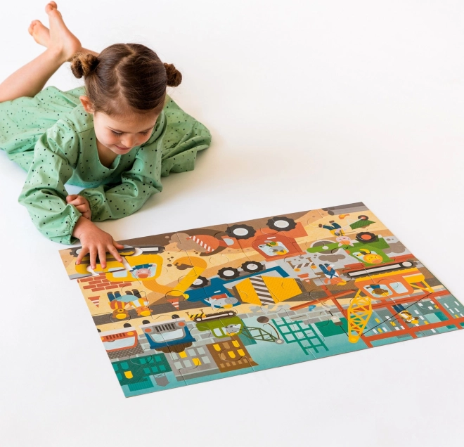 A Padlópuzzle Építkezés nagyszerű választás a kis építők számára. Ez a színes puzzle nem csak szórakoztat, hanem fejleszti a kreatív gondolkodást és a kéz-szem koordinációt. A puzzle újrahasznosított kartonból készült, és nem mérgező növényi alapú festékekkel nyomtatva, ami garantálja a biztonságot és a környezetbarátságot.