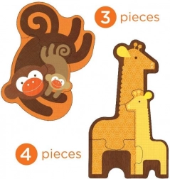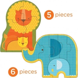 Bemutatjuk a Petit Collage Első Puzzle Bébi Safari-t, amely ideális választás a kicsi felfedezők számára 2 éves kortól. Ez a készlet négy állatfigurát tartalmaz, amelyeket a gyermeked fokozatosan ismerhet meg 3 és 6 darabos kirakók formájában, változó nehézség mellett.