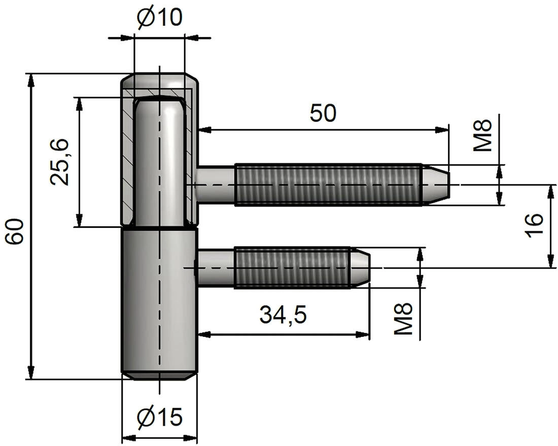 Ez a komplett ajtózsanér pontos és stabil rögzítést nyújt fa beltéri ajtók fa tokszerkezethez. A 60/10 méret és az M8 menet biztos meghúzást és könnyű beállítást tesz lehetővé. A sárga horganyzás védi a felületet a korróziótól és elegáns, műszaki megjelenést ad.